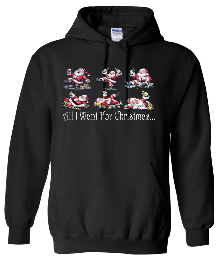 Celebrate the season with a touch of festive mischief with our drunk Santa edition hoodie.