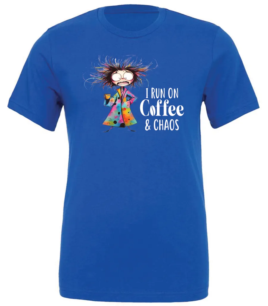 I Run On Coffee & Chaos | Crewneck T-Shirt