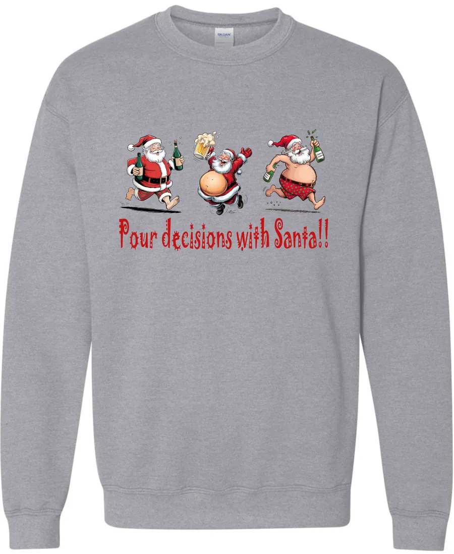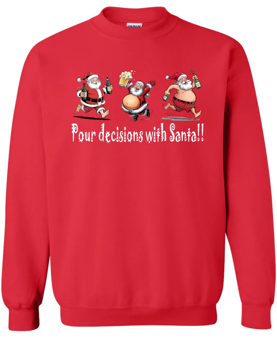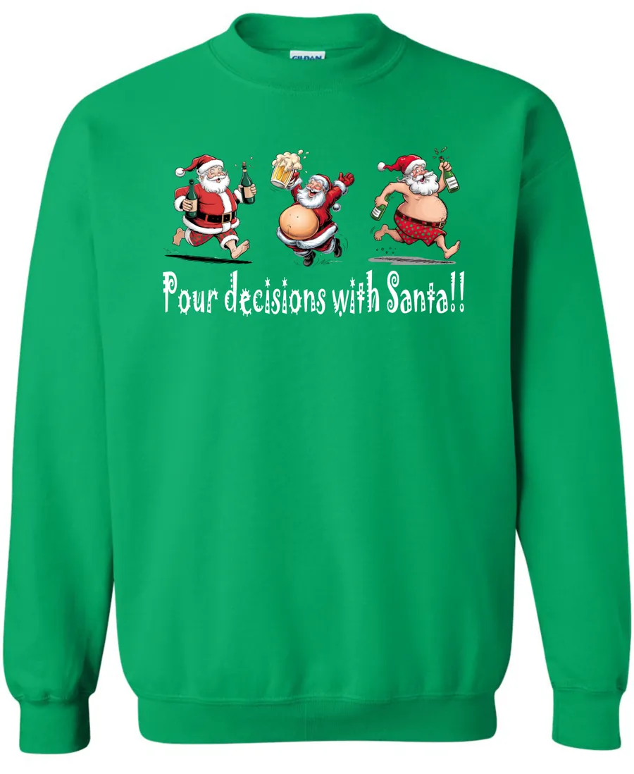 Pour Decisions With Drunken Santa!! | Christmas Crewneck Sweatshirt