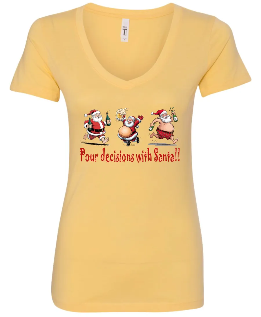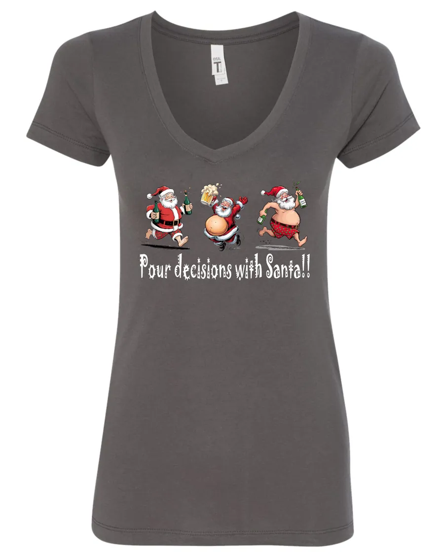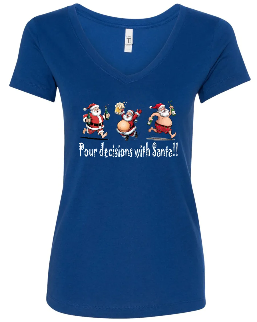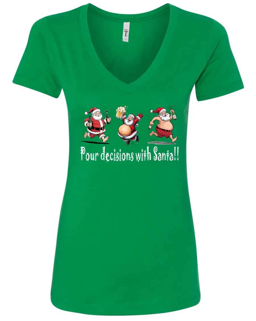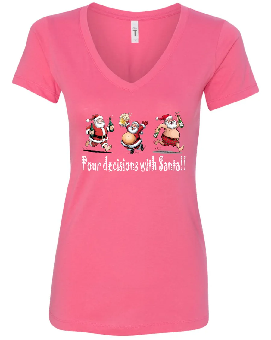 Pour Decisions With Drunken Santa!! | Christmas V-Neck T-Shirt