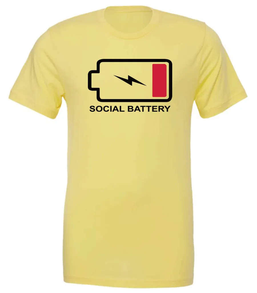 Low battery, because sometimes a small talk feels like a full time job. This t-shirt is made for the quite, the antisocial or just for the ones who have low energy.